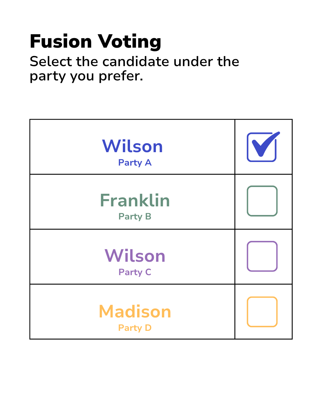 [1] Fusion voting. (n.d.). Ballotpedia. https://ballotpedia.org/Fusion_voting